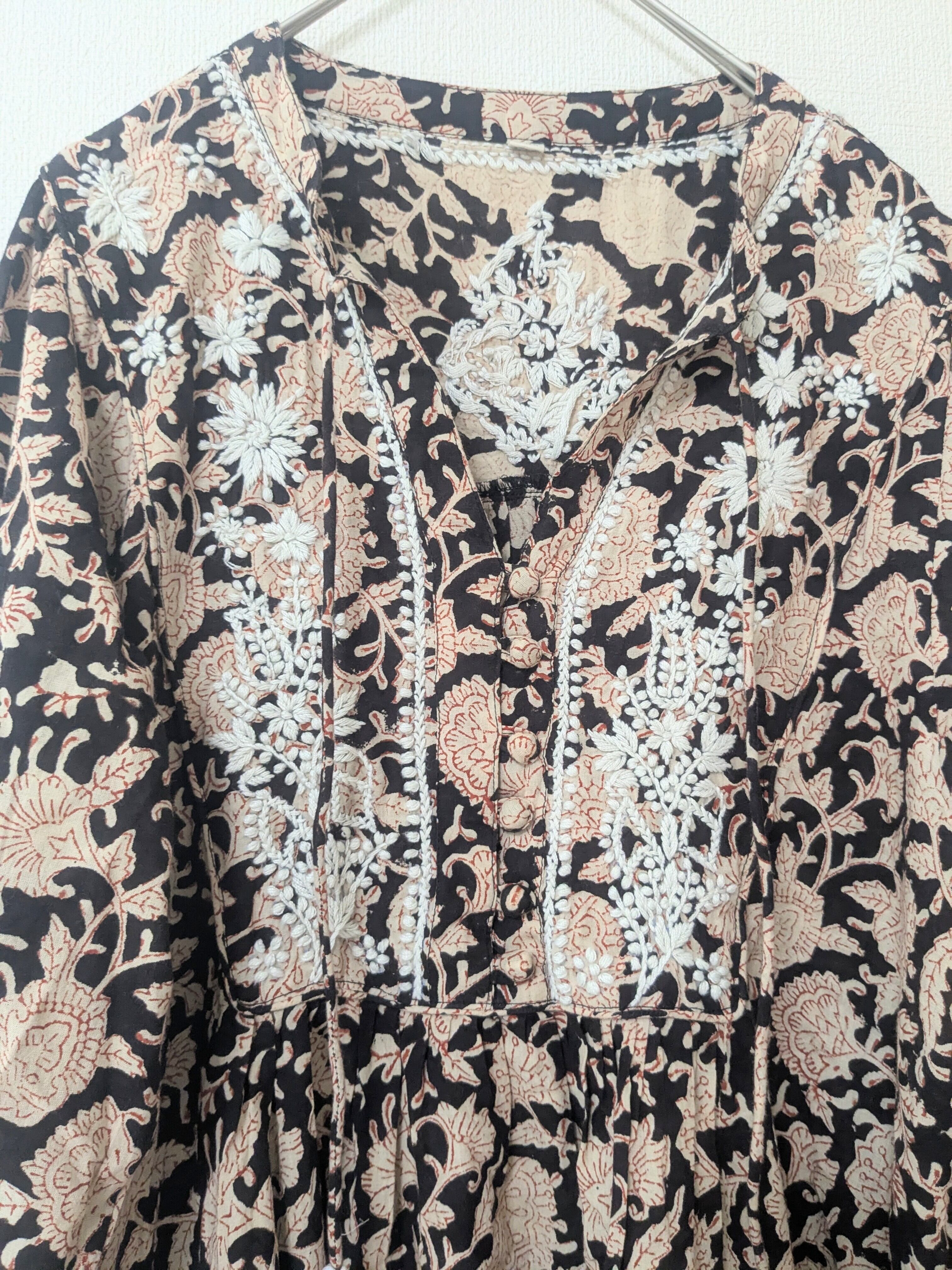 ラクノウ刺繍×ハンドブロックプリントの、なかなか見かけないワンピース。