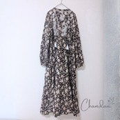 FINAL SALE【8/31閉店】ラクノウ刺繍×ブロックプリントワンピ【ブラック×ベージュ】