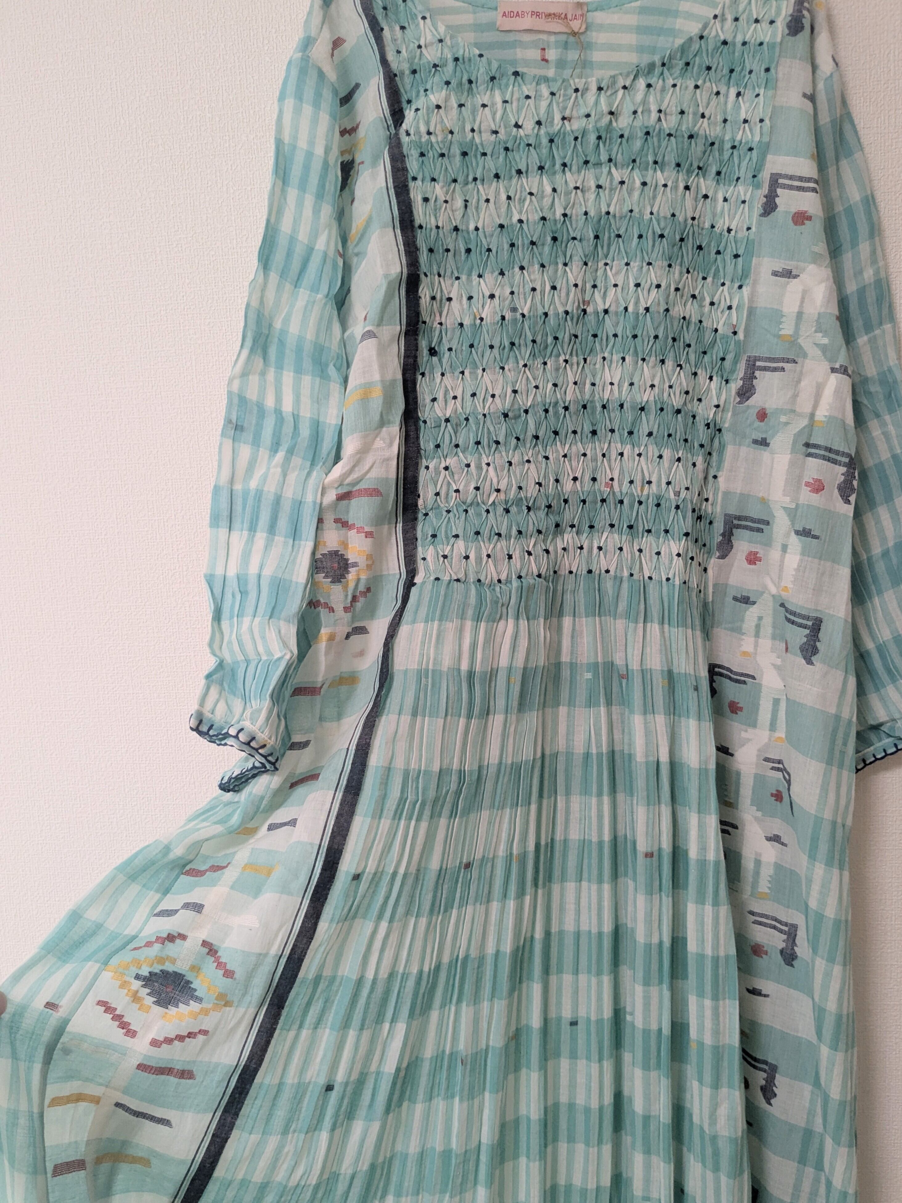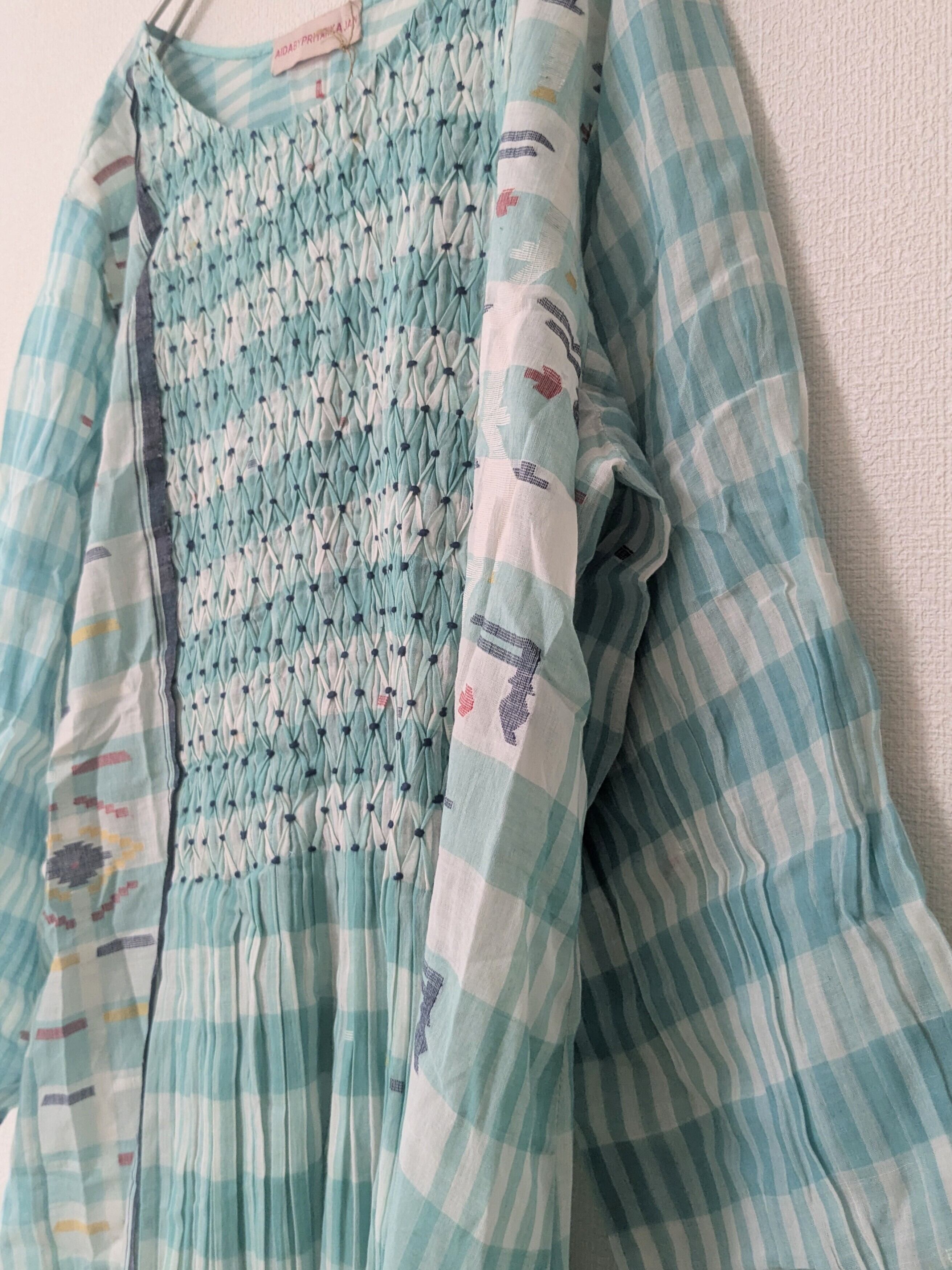 ジャムダニ織×スモッキング刺繍のワンピース。