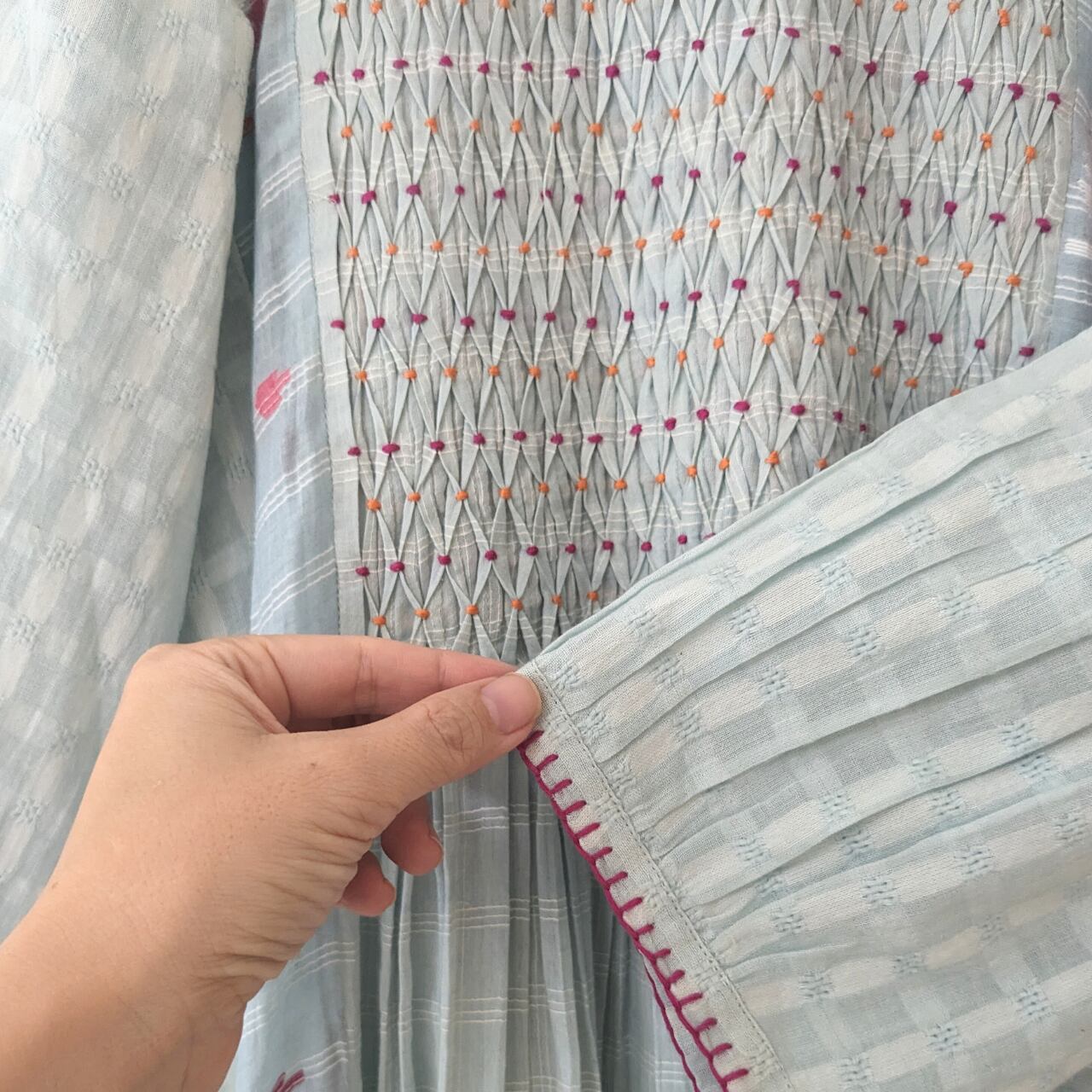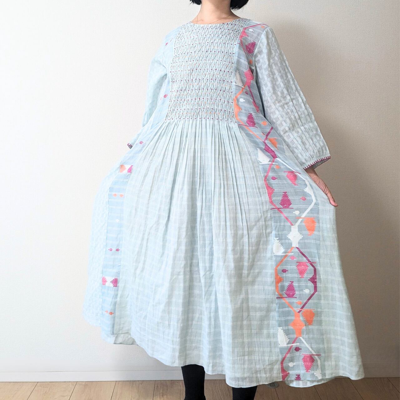 【春のスモーキーブルーさん】スモッキング×ジャムダニ織ワンピース