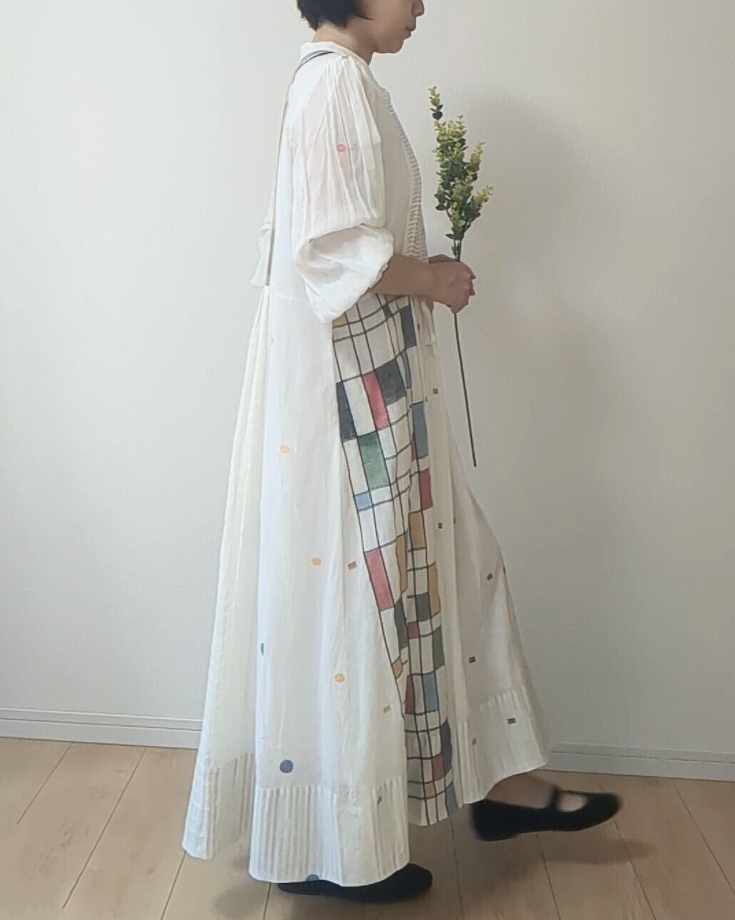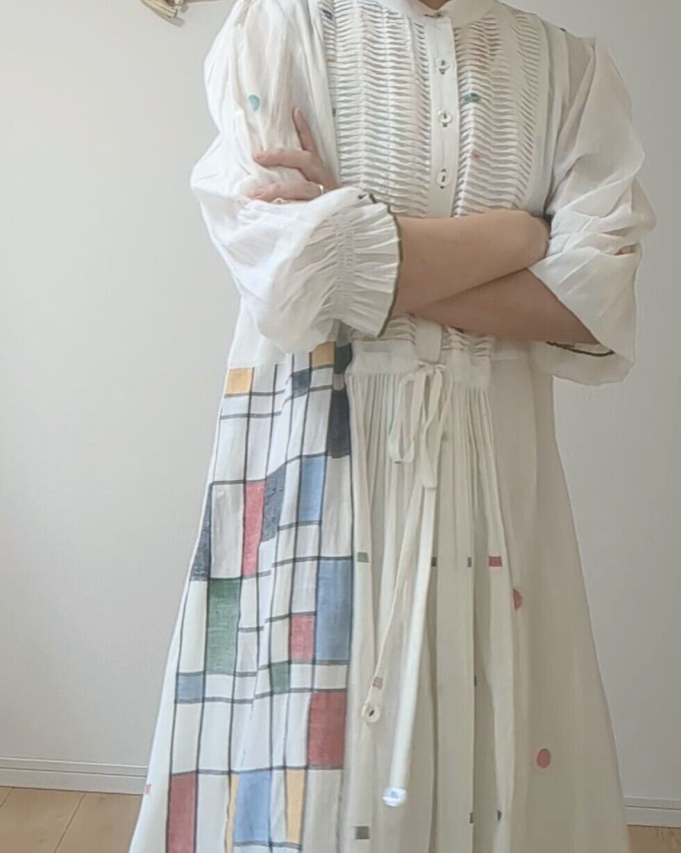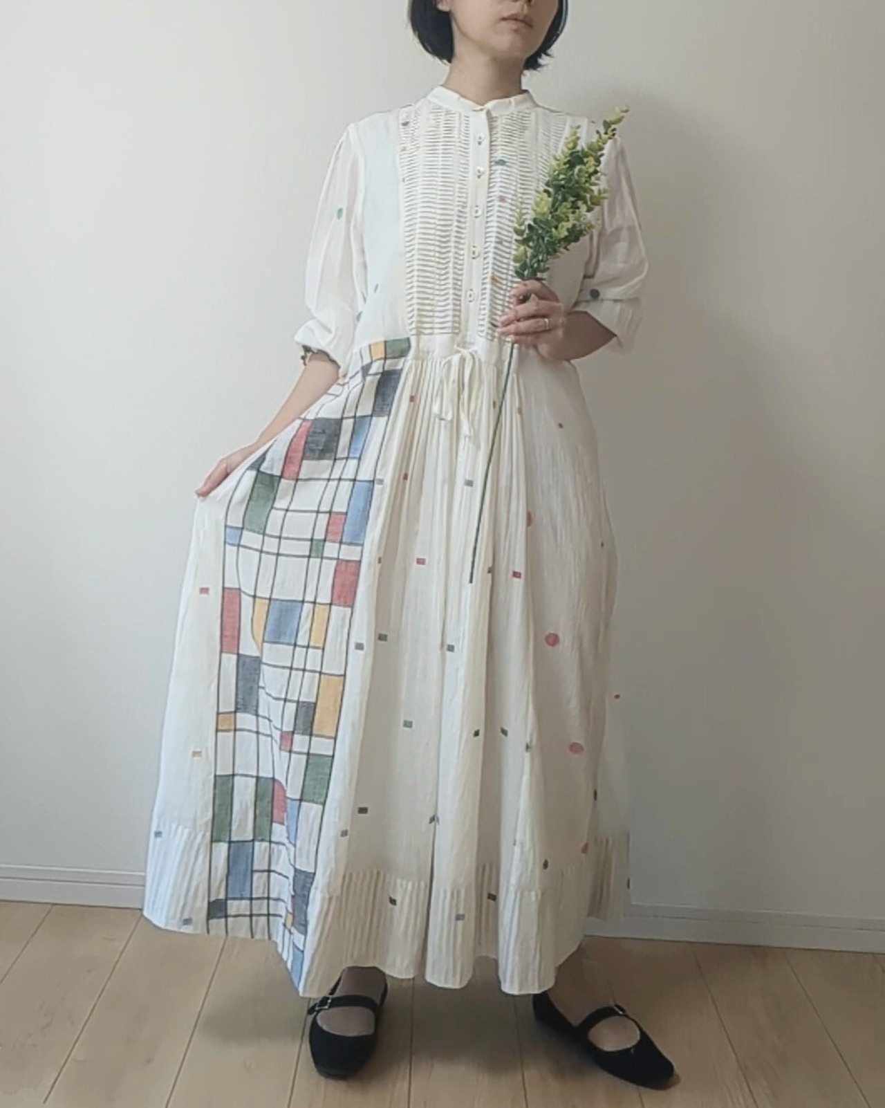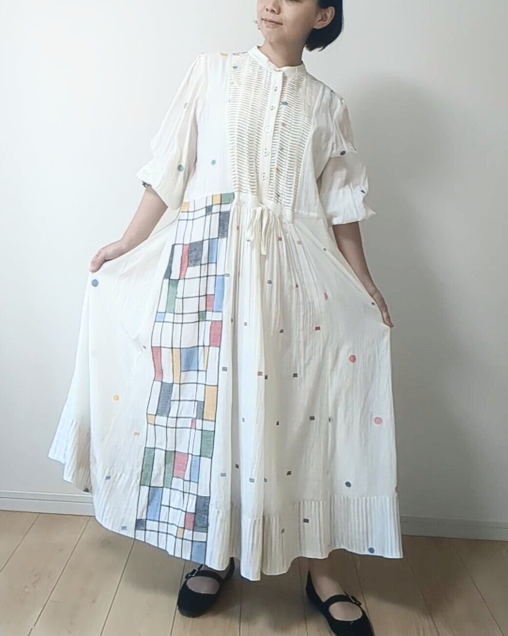 【ステンドグラス】ジャムダニ織(カディ)×ピンタック ワンピース コットン100%